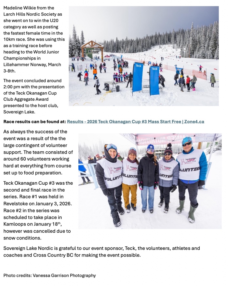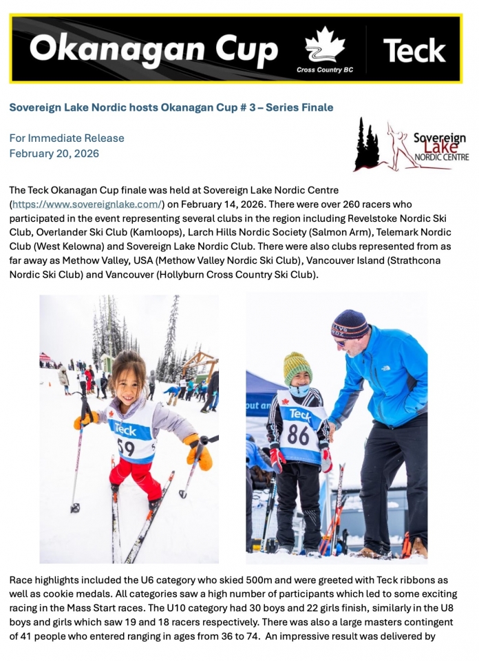 Press Release: Sovereign Lake Nordic Hosts Teck Okanagan Cup Series Finale (Vernon, BC) »