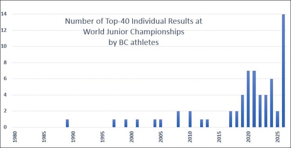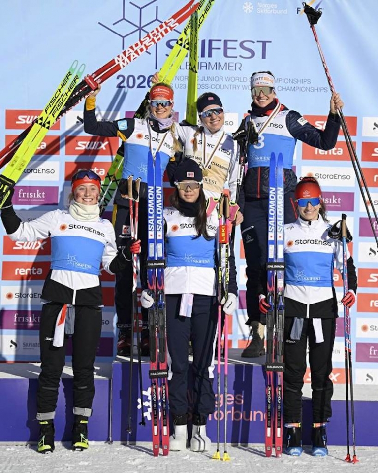 Photo 1: 2 skiers from BC in the top-6 in the World! In Lillehammer Norway at the 2026 World Junior Championships. (Ruby Serrouya from Revelstoke is bottom left and Louison Dubief from Fernie is bottom right.)